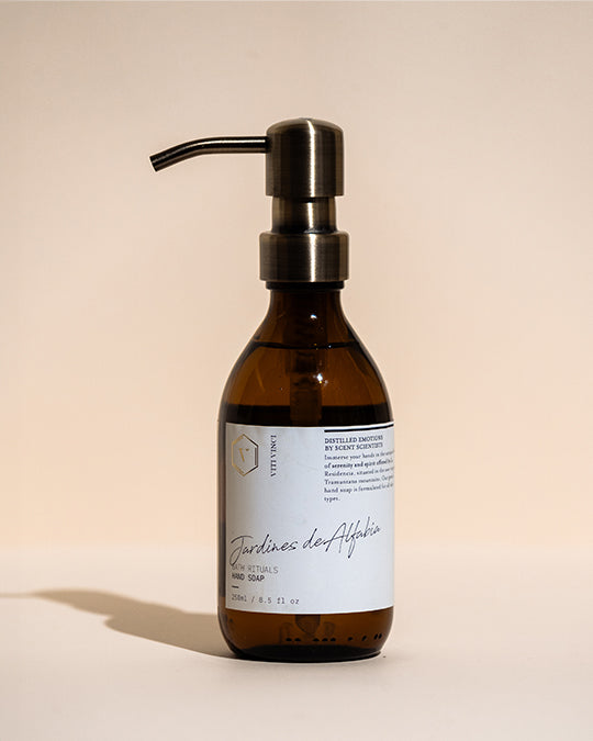 Imagine wandering through Alfabia Gardens at dawn. Notes of fresh blooms and earthy greens mingle with the zest of Mediterranean citrus, crafting a fragrance that ́s both a greeting and a promise