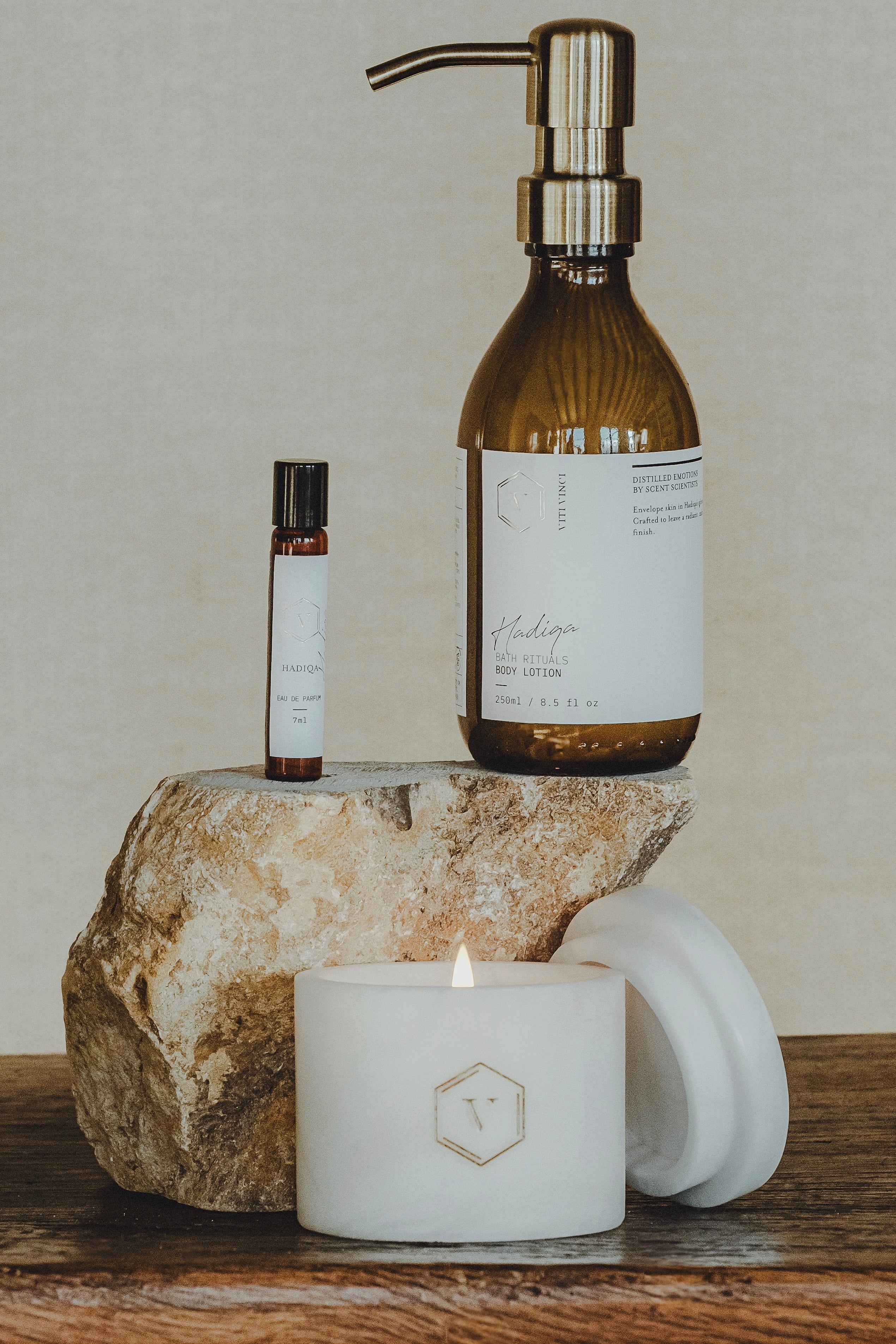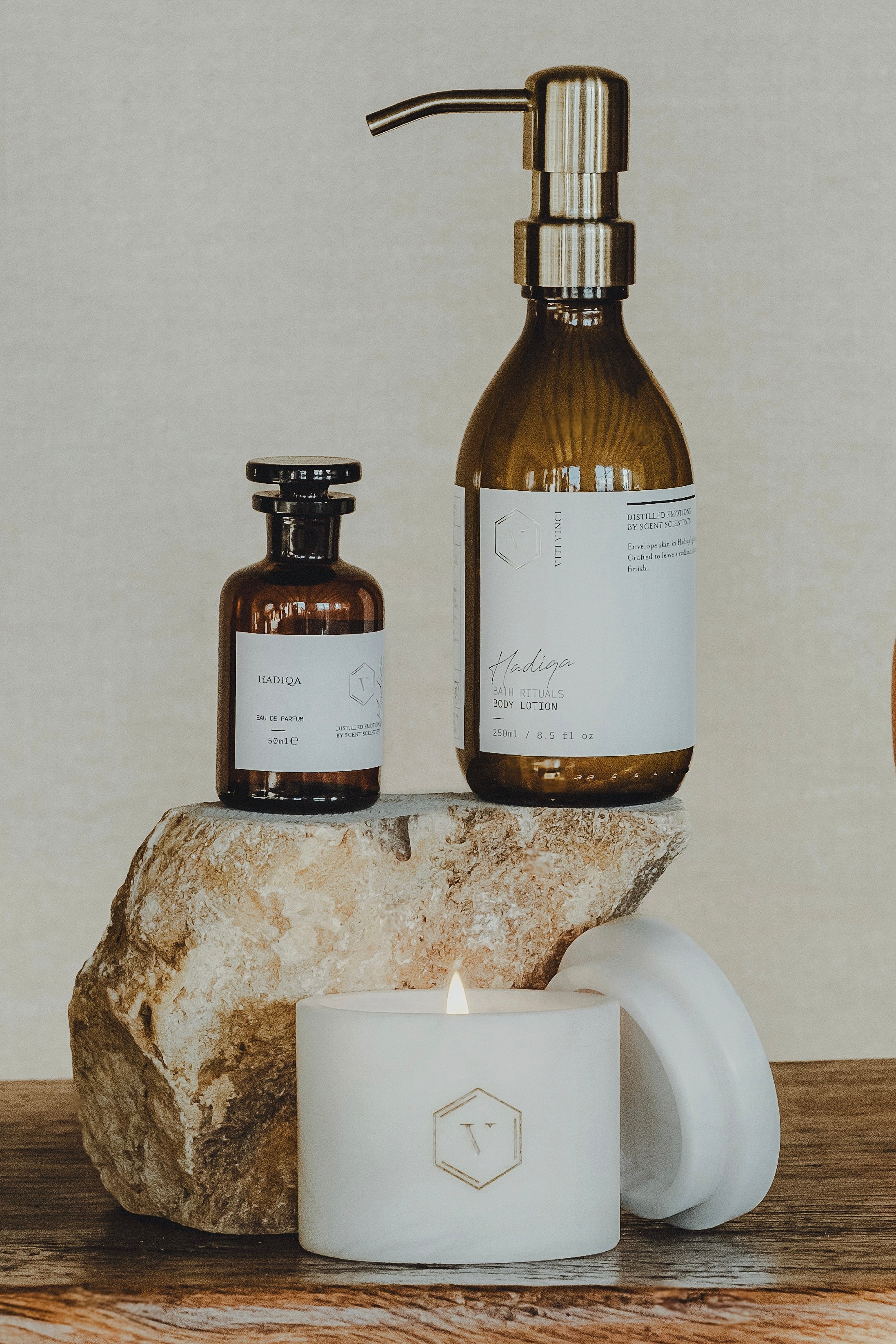 Bath Amenities (Hadiqa Line): Shower gel or body cream to turn the bathing ritual into an intimate extension of the perfume.