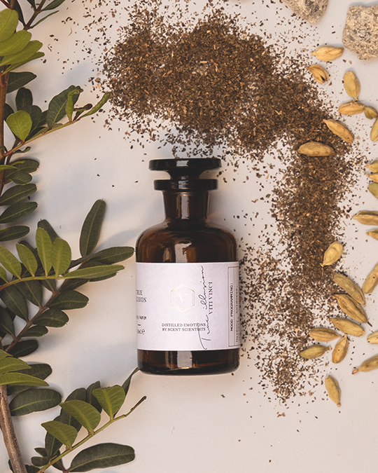 Paleta aromática: Vetiver, pachuli, cedro de Atlas, incienso olíbano, jara, lentisco, cardamomo, neroli, bergamota.