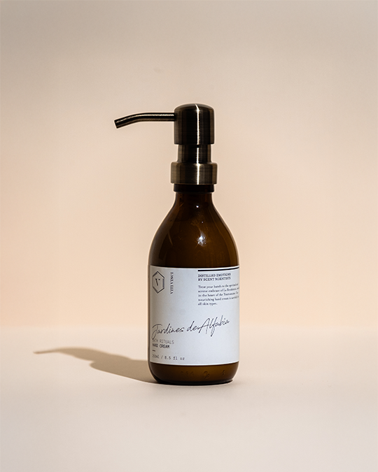 Our body lotion is a journey through the verdant Alfabia Gardens, capturing the delicate balance of floral breezes and sun-kissed earth in a bottle.